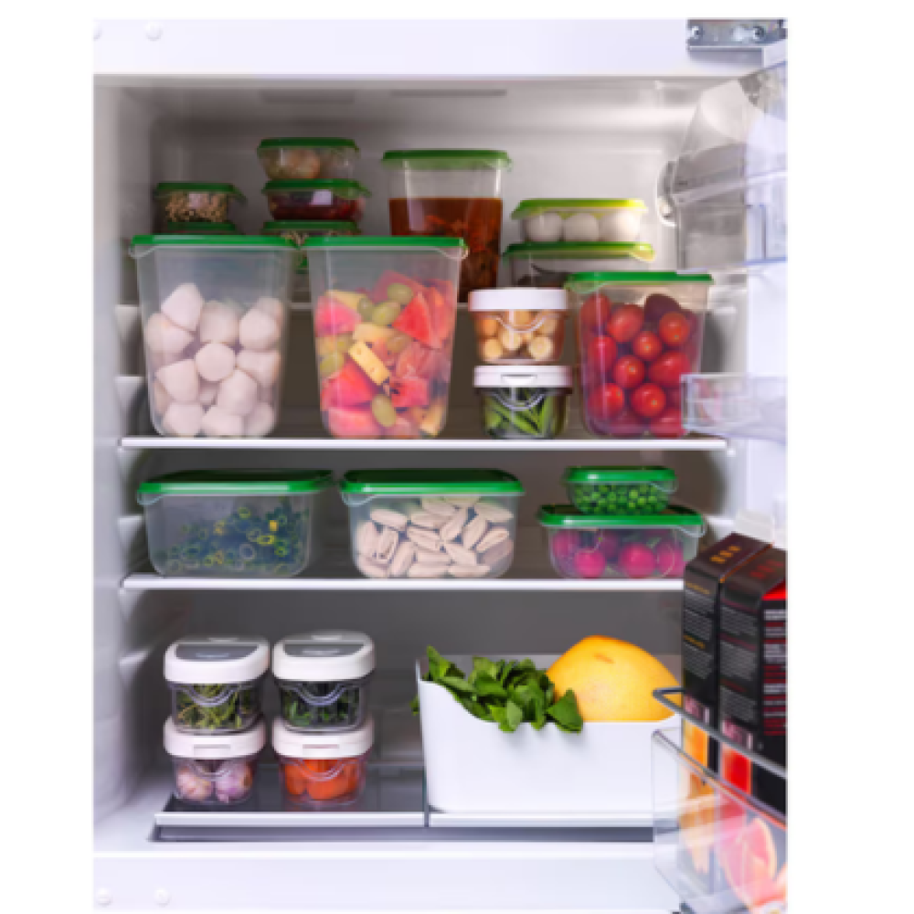 يمكن تكديس عدة حافظات طعام فوق بعضها لتوفير المساحة في الثلاجة والفريزر.