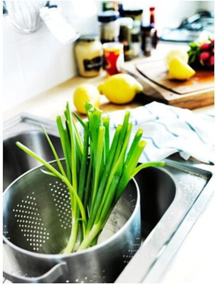 مثالية للاستخدام كمصفاة للسباجيتي أو المعكرونة أو الخضرواتالقطر: 22,9 سمستانلس ستيلآمنة للغسل في غسالة الأطباق.مصفاة كلاسيكية من الستانلس ستيل - عميقة وقوية ومتينة