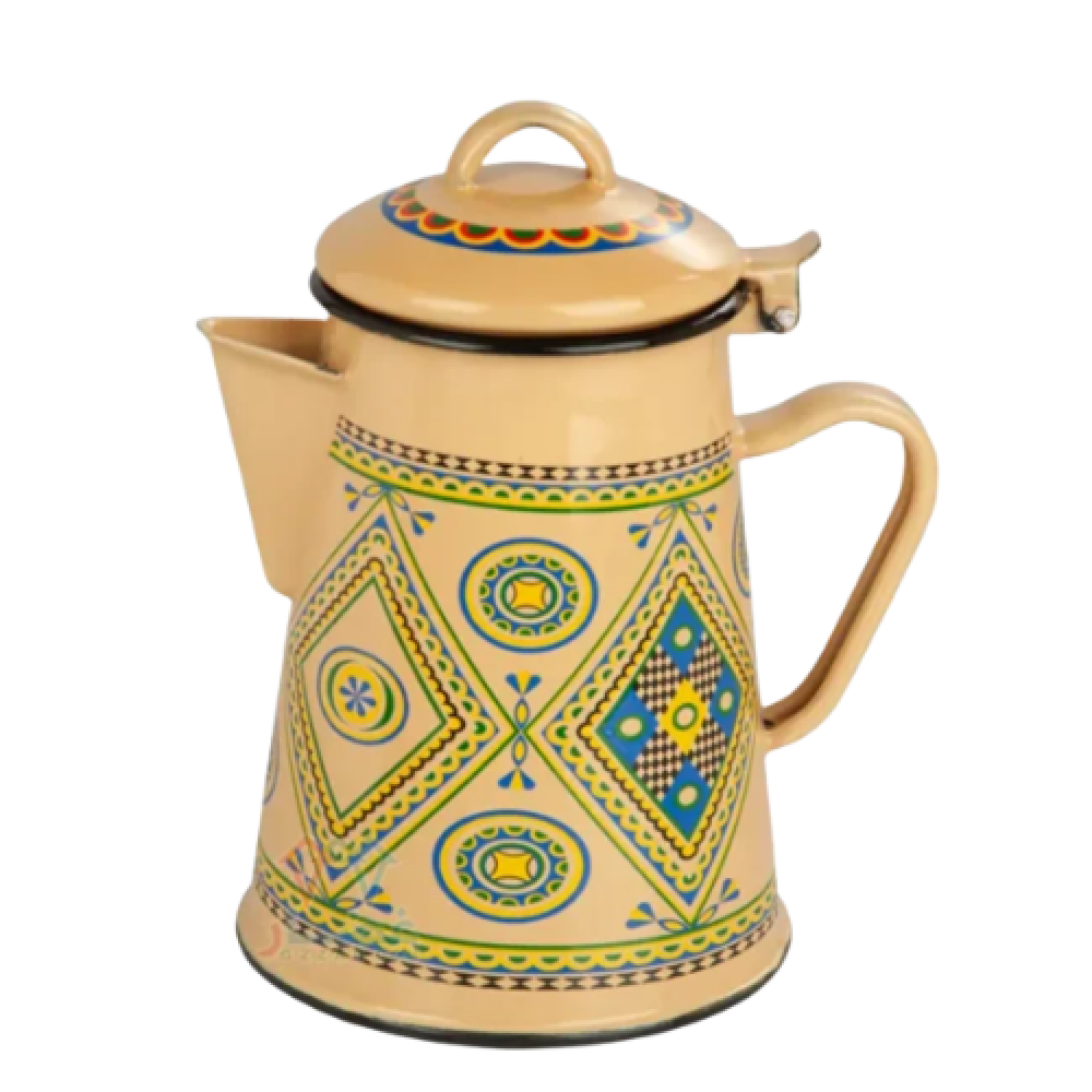 دلة حليب غضار نقشة تراثية بيج مقاس 1800مل