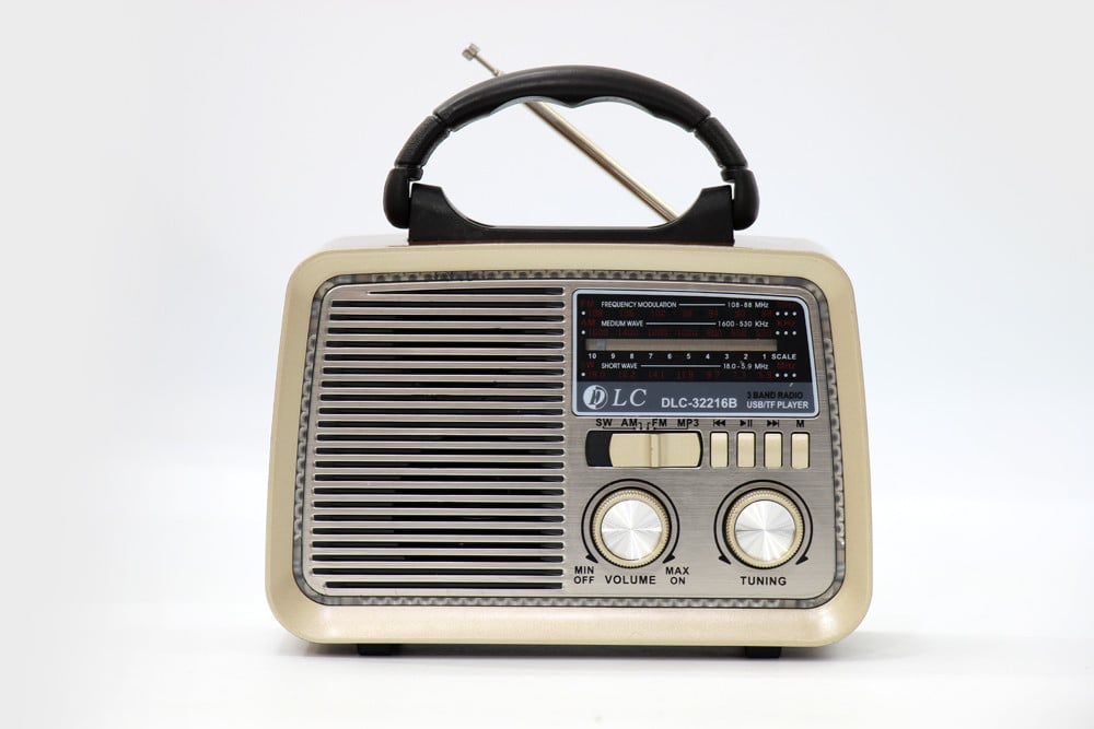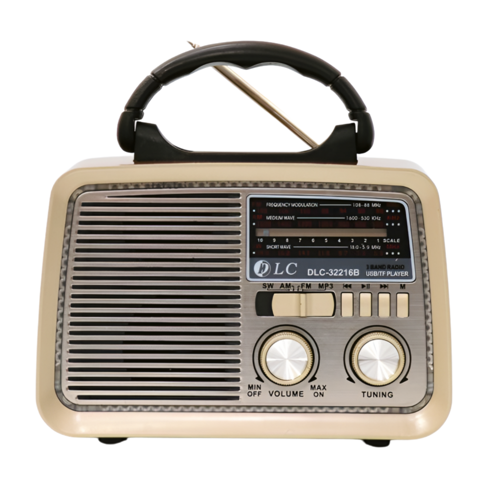 راديو قديم بني محروق مزود ببلوتوث ومدخل بطاقة ذاكرة اس دي، يو اس بي ومنفذ يو اكس DLC-32216B