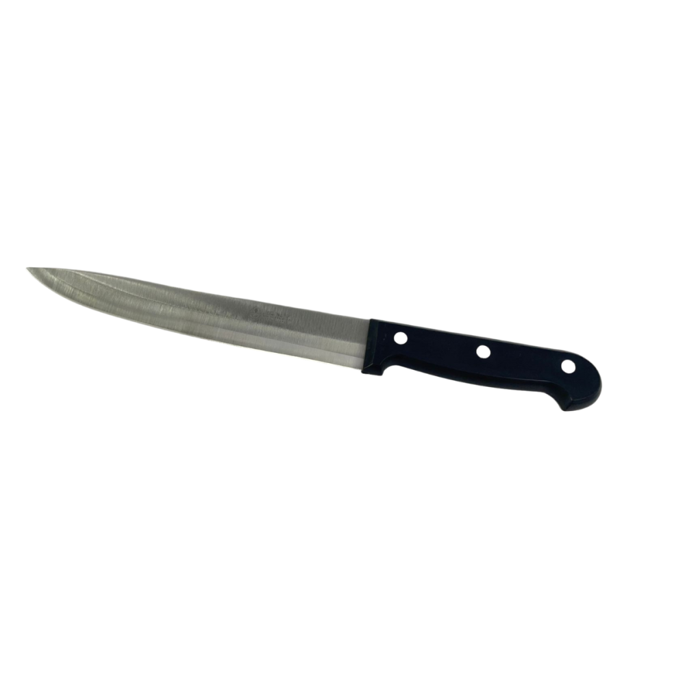 سكين مطبخ احترافية مصممة لتقطيع اللحوم والخضروات بسهولة ودقة. تأتي بشفرة حادة مصنوعة من الفولاذ المقاوم للصدأ ومقبض بلاستيكي متين بثلاثة مسامير لتوفير قبضة ثابتة وآمنة.