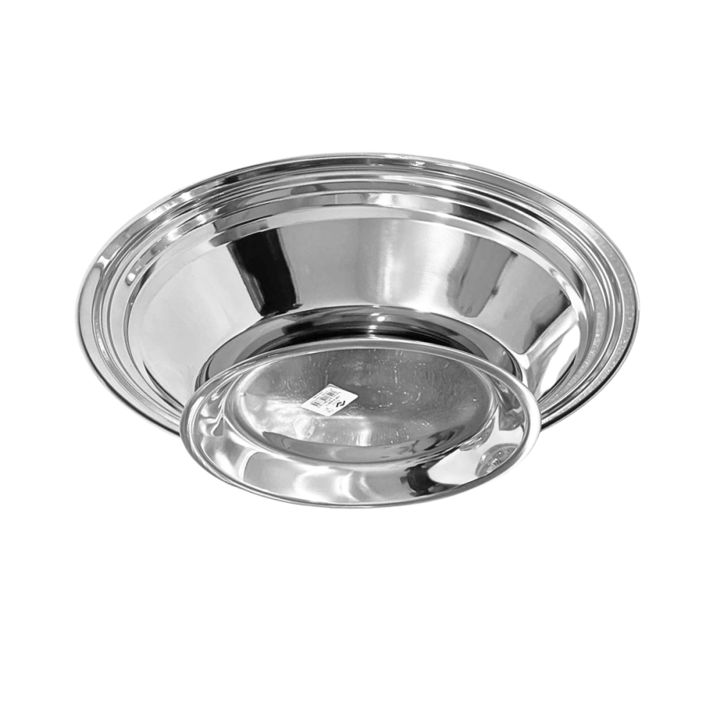 يتميز بلمعانه الفضي ومقاومته للصدأ، مما يجعله مثاليًا لتقديم الأرز، الغوزي، الكبسة أو الأطباق الرئيسية في المناسبات والعزائم.