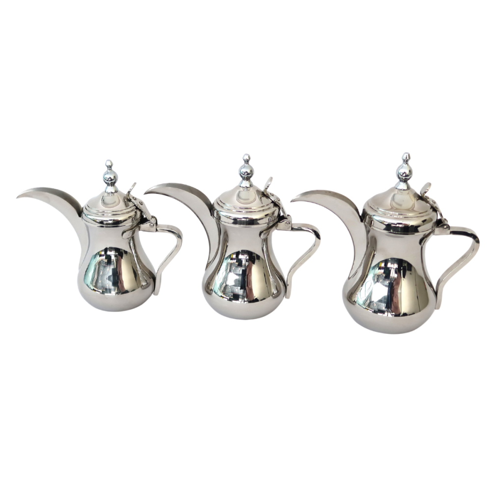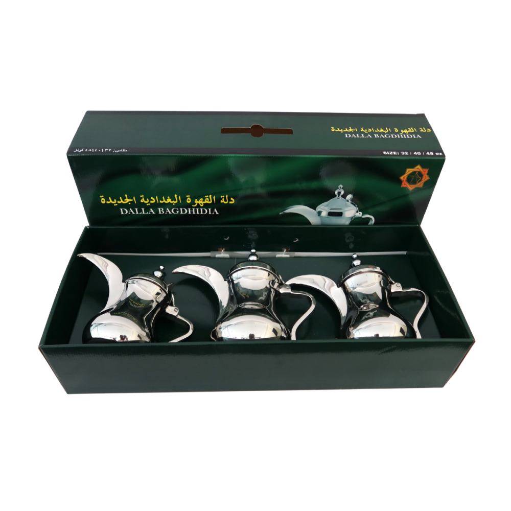 طقم دلة العساف البغدادية استانلس استيل 3 مقاسات 32-40-48
