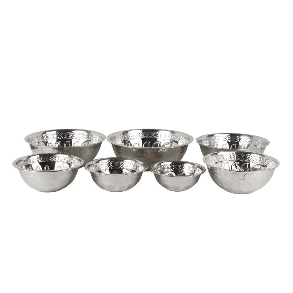 طقم طاسات استيل هندي منقوش 7 أحجام