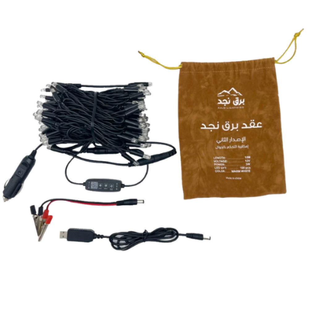 • العقد يأتي بطول 10 متر و 100 عدسة .