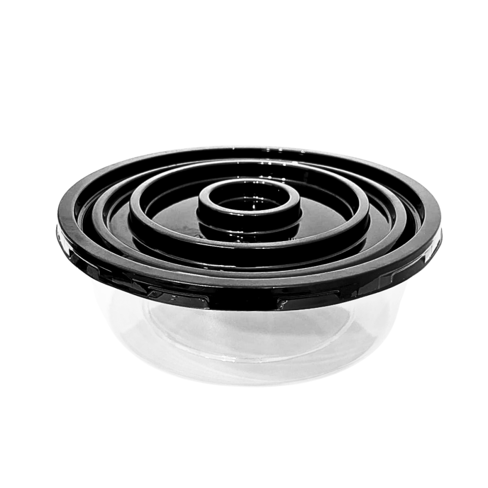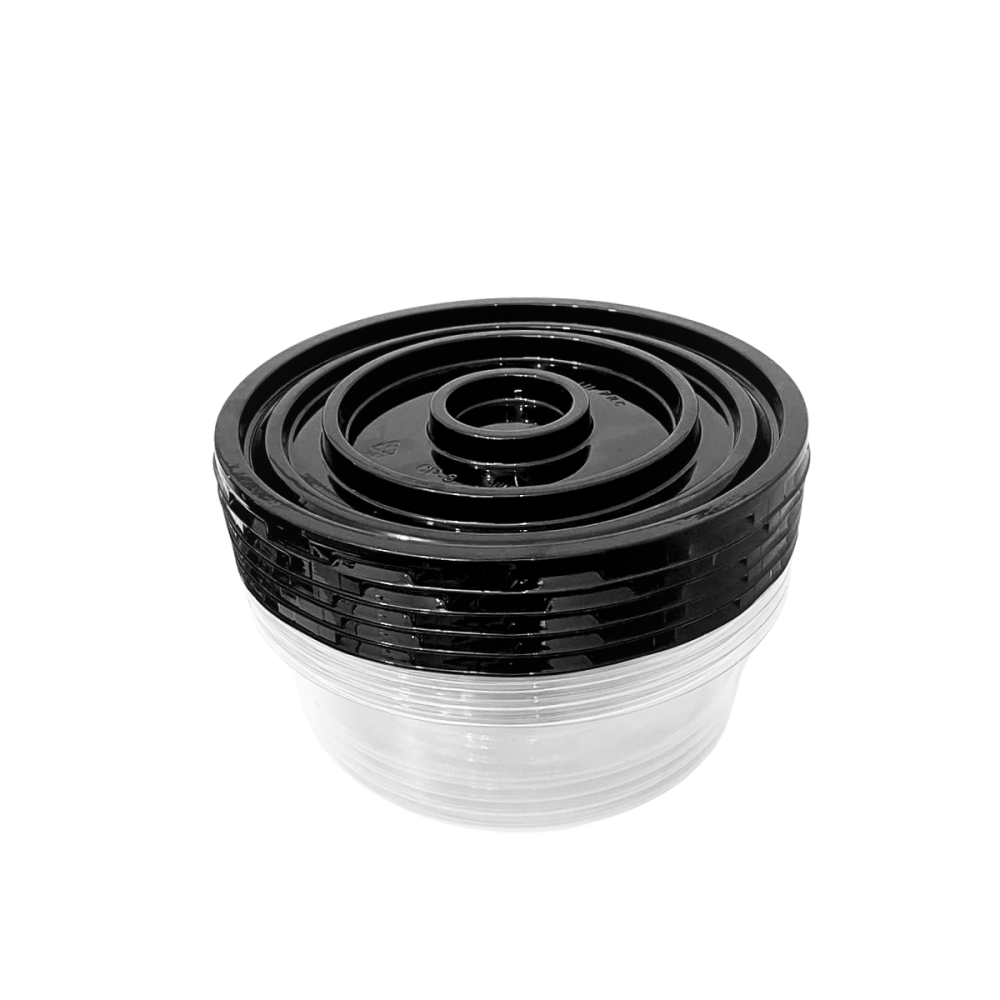 علبة بلاستيكية شفافة مع غطاء اسود مدور 5 حبات