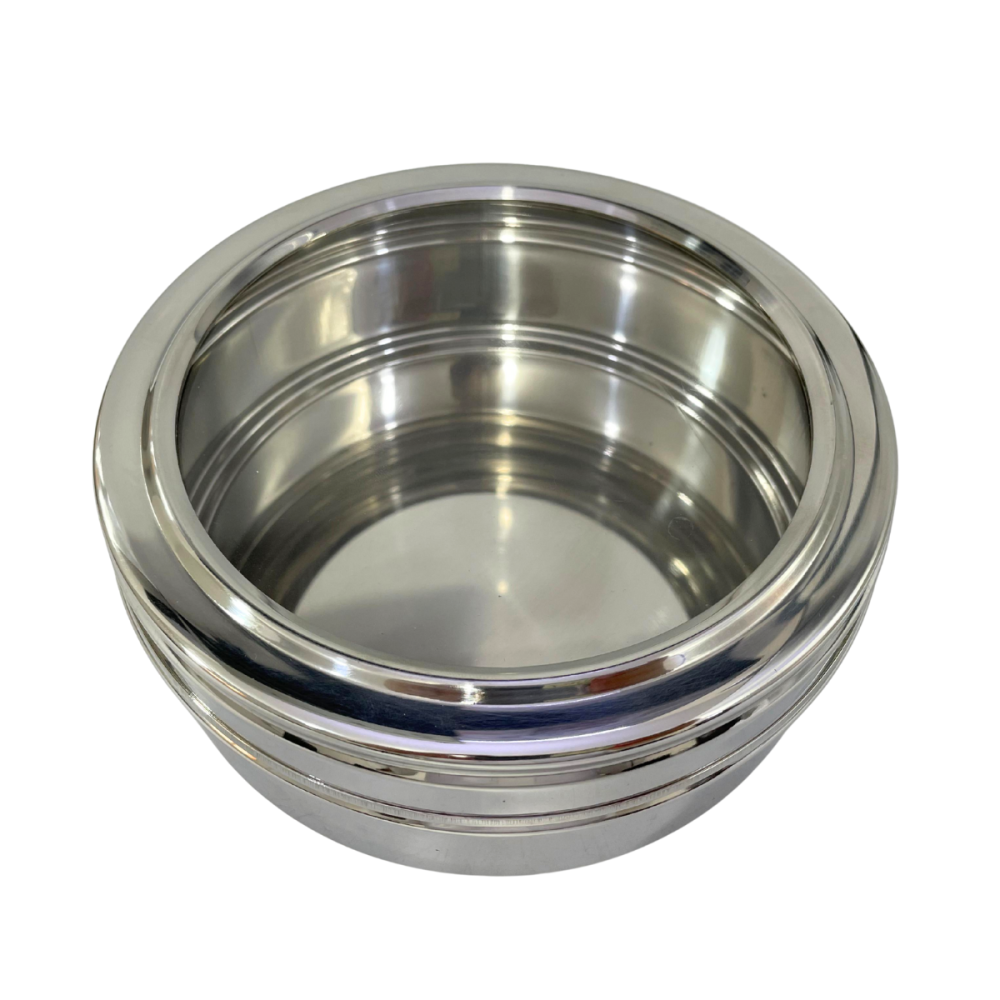 اجمع بين الأناقة والعملية مع علبة التمر والعسل المصنوعة من ستانلس ستيل عالي الجودة والمزودة بغطاء شفاف أنيق يتيح رؤية المحتوى بسهولة. تصميمها العصري يجعلها مثالية لتقديم التمر أو العسل في المناسبات، أو للاستخدام اليومي في المطبخ أو الضيافة.
