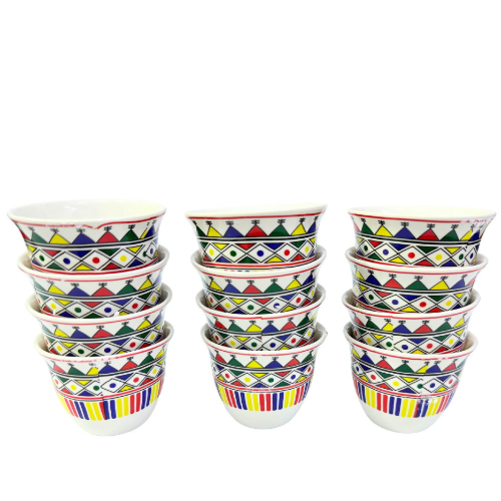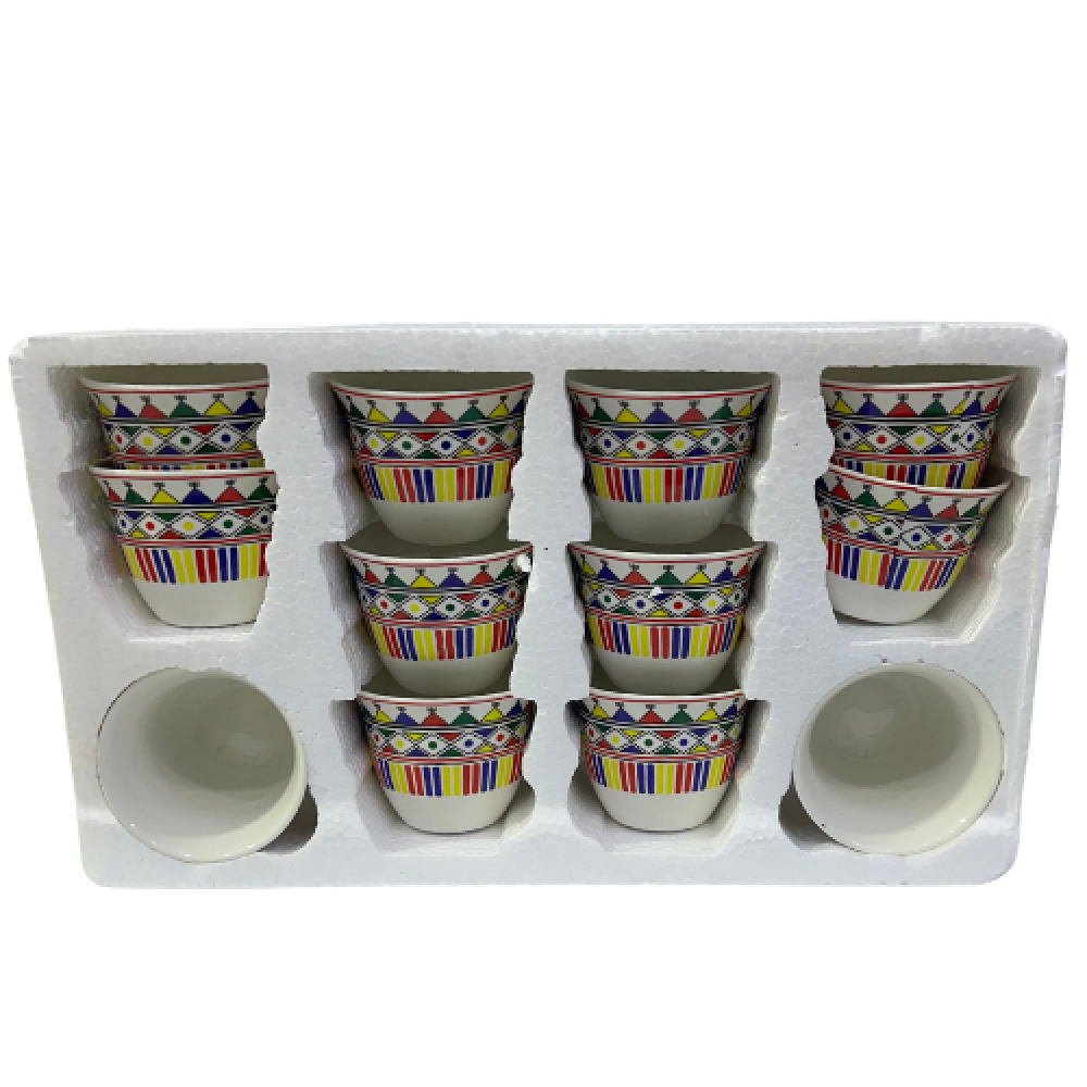 التمسي أثر الفخامة والرقي وانفردي بجلسة قهوة عربية مميزةمع فنجال القهوة العربية نقش ورق نخيل سيراميكمصمم ومصنوع وفق أعلى المواصفات العالميةذو حواف ناعمة ونقش فاخر لا يقدم مع الزمن.