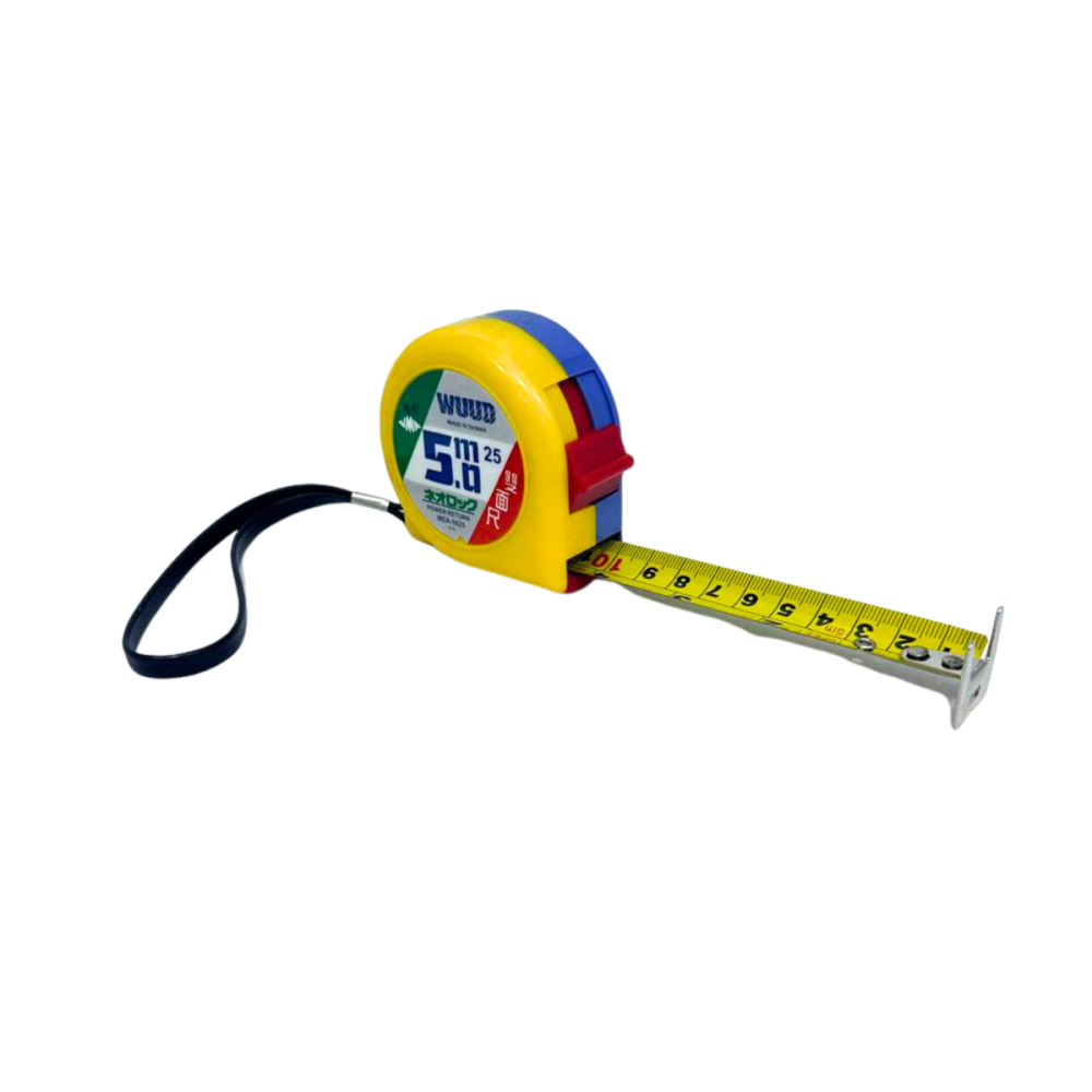 متر قياس تايواني بطول 5 متر يُعد من الأدوات الأساسية لكل فني أو مستخدم منزلي، يتميز بجسم قوي مضاد للصدمات وشريط فولاذي عالي المتانة. يوفر قراءة دقيقة وسهلة بفضل الترقيم الواضح والتدريج المزدوج (سنتيمتر/بوصة)، مع زر قفل للتحكم بالشريط عند الاستخدام. يأتي بتصميم مريح لقبضة اليد وسهل الحمل في الجيب أو التعليق على الحزام.