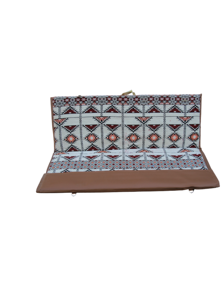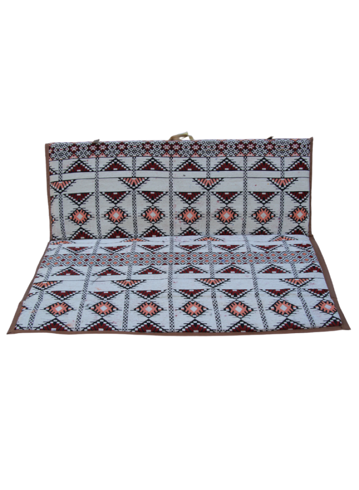 فرشة أرضية مع سنادة ظهر كبيرة الحجم لشخصين، قابلة للطي ومناسبة في الرحلات .وزن المنتج : 2500 جرامالمادة الخام : قماش + حديدقابل للطي : نعمالمقاس:120سماللون: نقشة تراثية