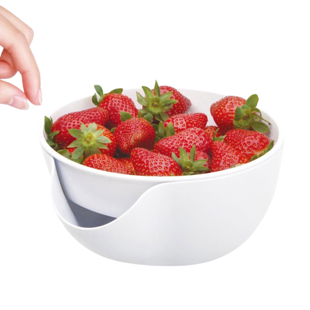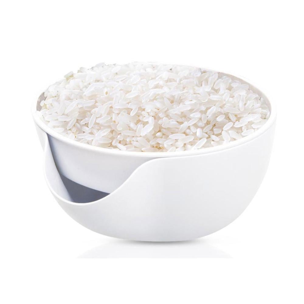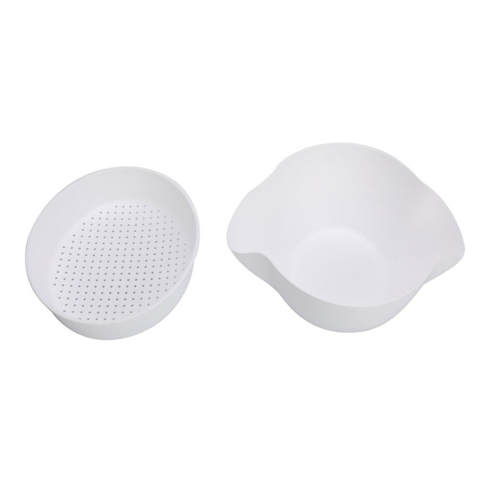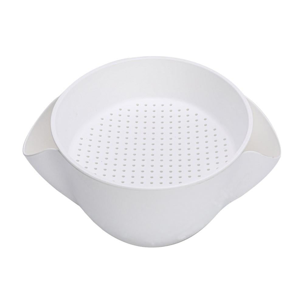 مصفاة أرز وخضروات بلاستيك بيضاوية مع صحن بفتحات جانبية