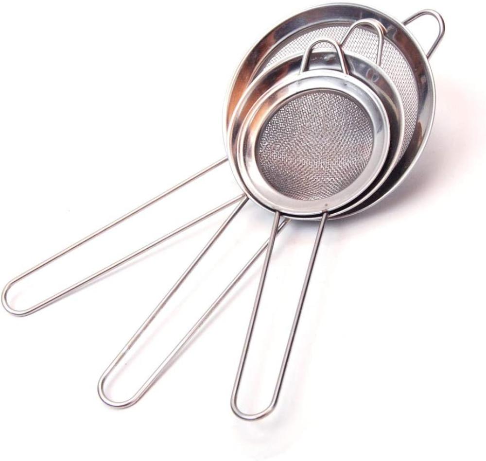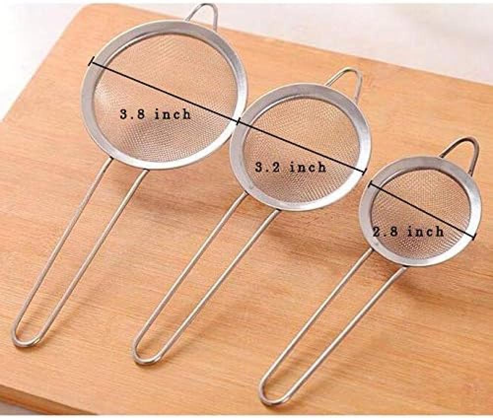 هومتيك 3 عبوات - مصفاة شبكية دقيقة من الستانلس ستيل بقطر 3.8 انش و3.2 انش و2.8 انش مع مقبض قوي وخطاف